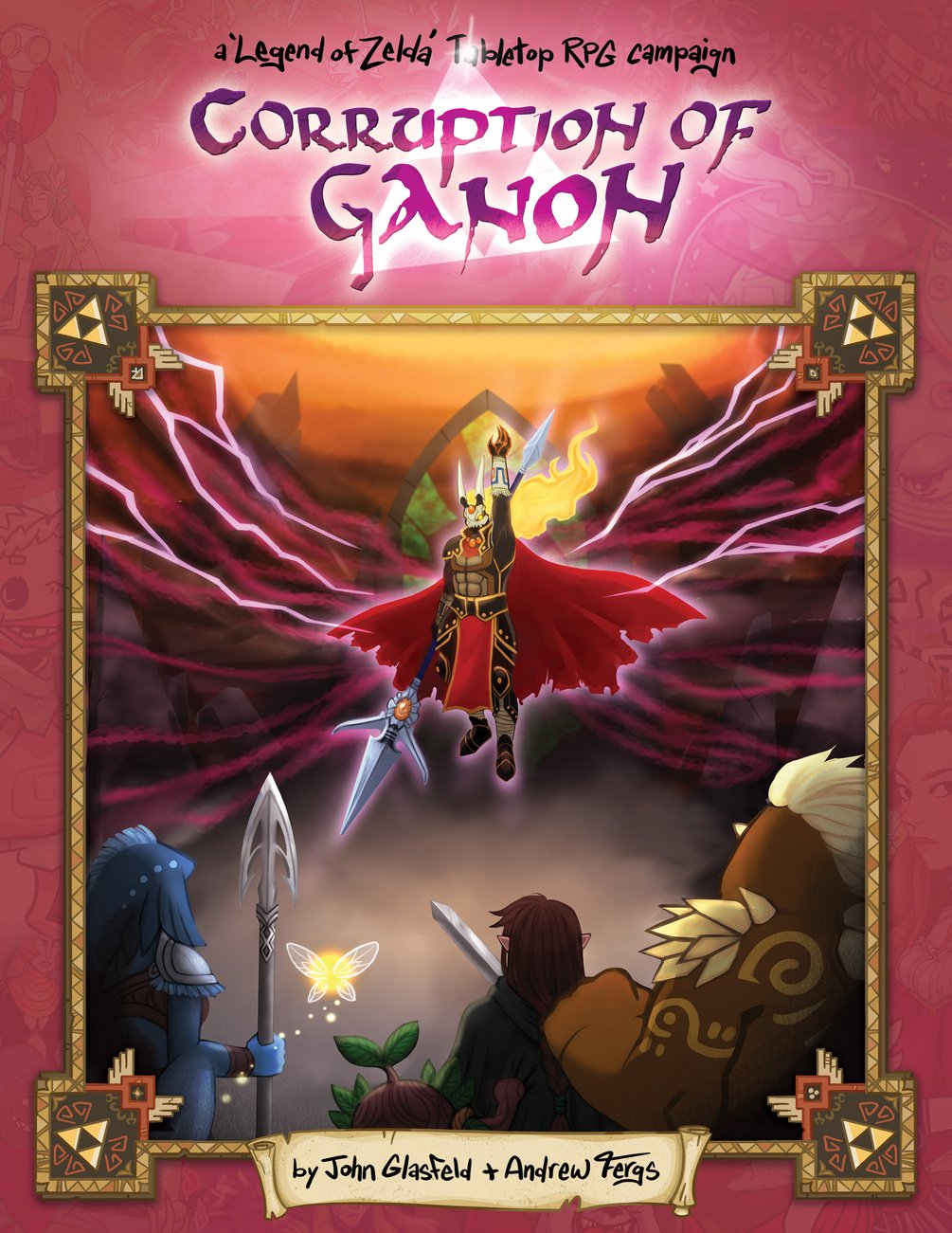 Corruption of Ganon is an 80-page tabletop roleplaying adventure based in The Legend of Zelda lore, written by John Glasfeld & Andrew Ferguson. While intended to be played with the ruleset of Zelda fan RPG It's Dangerous to Go Alone, it's communicated simply enough to easily accompany any tabletop system.